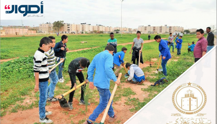 انطلاق حملة تشجير لعدد من الحدائق ببلدية بنغازي.