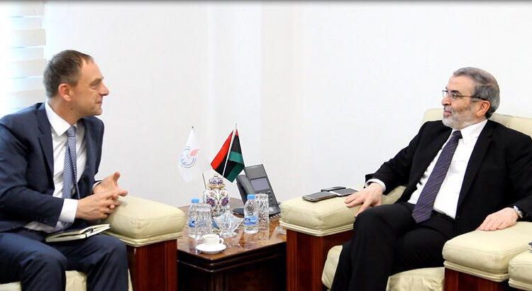 بحث السيط مصطفى صنع الله رئيس المؤسسة الوطنية للنفط مع السفير الالماني لدى ليبيا السيد كريستيان بوك، زيادة نشاط الشركات الالمانية في ليبيا، و نشاط شركة فنترسهال الألمانية في ليبيا، خلال اجتماع عقده صباح اليوم الثلاثاء بمقر المؤسسة الوطنية للنفط في طرابلس.