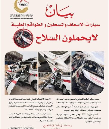 وأدان مركز الطب الميداني والدعم بأشد العبارات، الضربات الجوية التي استهدفت سيارة إسعاف في منطقة عين زارة