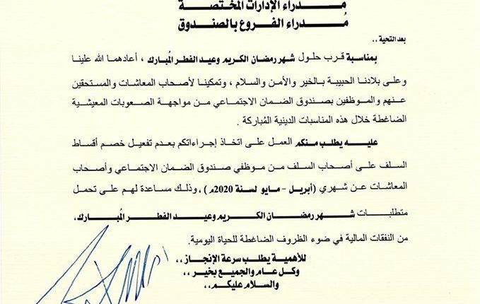 الضمان الاجتماعي: اعفاء الموظفين من أقساط السلف لشهرين بمناسبة شهر رمضان