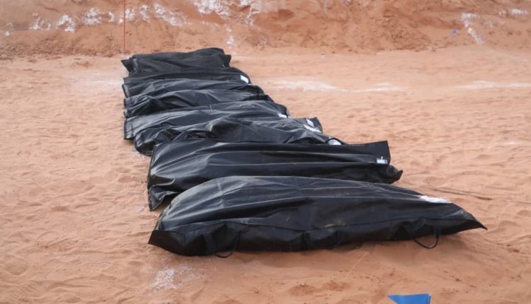 اعلنت وزارة العدل بحكومة الوفاق، انتشال رفاة 11 جثة مجهولة الهوية لأشخاص معصوبي الأعين ومكتوفي الأيدي، بعد اكتشافها لمقبرة جماعية جديدة، بالموقع رقم (B3) بمشروع الربط بمدينة ترهونة.