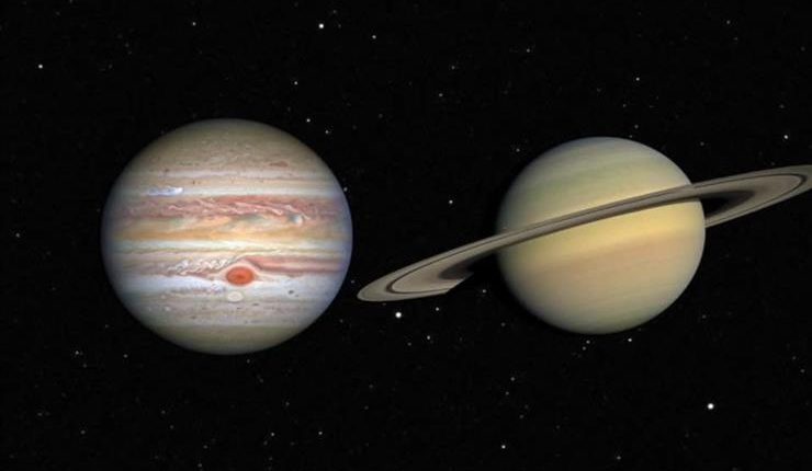 ويدور المشتري، أكبر كواكب المجموعة الشمسية، حول الشمس في 12 عاماً، فيما تستغرق دورة زحل 29 عاماً، وفي كل عشرين عاماً تقريباً، يظهر الكوكبان كأنهما يتقاربان لدى مراقبة السماء من الأرض.