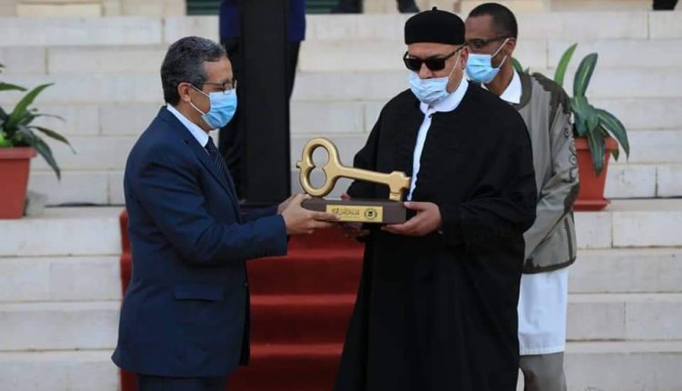 استلم عميد بلدية طرابلس المركز المنتخب “إبراهيم الخليفي” من العميد الأسبق “عبدالرؤوف بيت المال” مفتاح العاصمة أمس السبت بقصر الخلد.