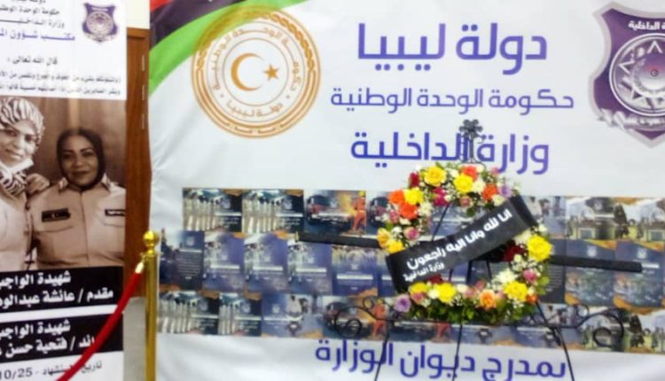 نظم مكتب شؤون المرأة بوزارة الداخلية أمس الاثنين حفل تأبين ضابطتين من منتسبي الوزارة و هما (مقدم/ عائشة عبدالرحمن ، رائد/فتحية حسن) اللتين وافتهما المنية إثر حادث سير أثناء عودتهما الى طرابلس بعد ان اختتمتا دورة تدريبية في مجال عملهما .