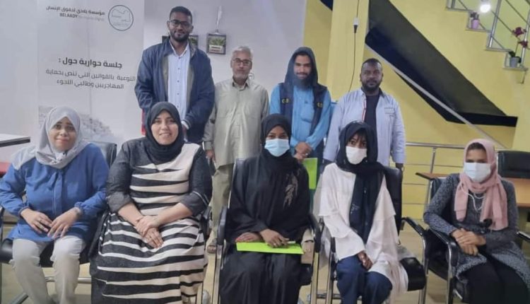 أقامت مؤسسة بلادي لحقوق الإنسان المتخصصة في مجال شؤون اللاجئين والمهاجريين الغير نظاميين جلسة حوارية تحت عنوان ( التوعية بالقوانين التي تنص بحماية المهاجريين وطالبي اللجوء ) في مدينة سبها وذلك يوم 8 نوفمبر 2022 ضمن فعاليات مشروع SHARP الممول من الاتحاد الأوروبي