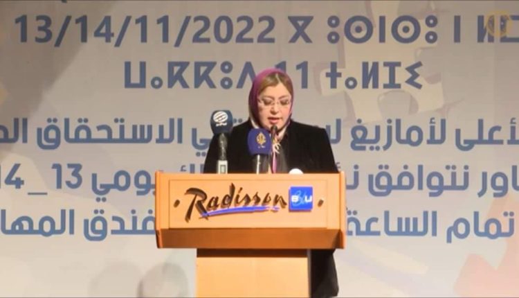 وقالت الطرمال في كلمتها ” لمكون الامازيغ العريق ، الحق في رسم مستقبل الوطن والمشاركة في صنع القرار، كما أن مشاركتهم واجب ومحتوم لبناء الدولة المدنية الحديثة التي قدموا لاجلها الغالي والنفيس..”