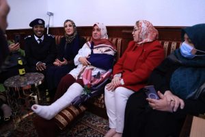 اطمأنت وزيرالدولة لشؤون المرأة (حورية الطرمال) على صحة المعلمة (انيسة دهان) مدير مدرسة (عائشة أم المؤمنين) في مدينة زوارة والتي تعرضت لعملية اعتداء بالضرب من قبل ولي أمر وابنتها الأسبوع الماضي .